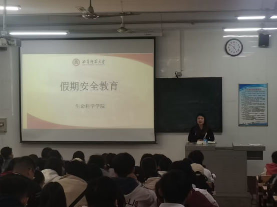 主题班会上,辅导员从交通安全、人身财产安全以及饮食安全、电信安全等方面展开,通过多则案例对学生进行教育引导,强调要增强责任意识、安全意识和法制意识,离校履行请假手续,外出做好自我防护。同学们认真聆听老师的提醒并进行相关记录并填报了五一假期去向表。