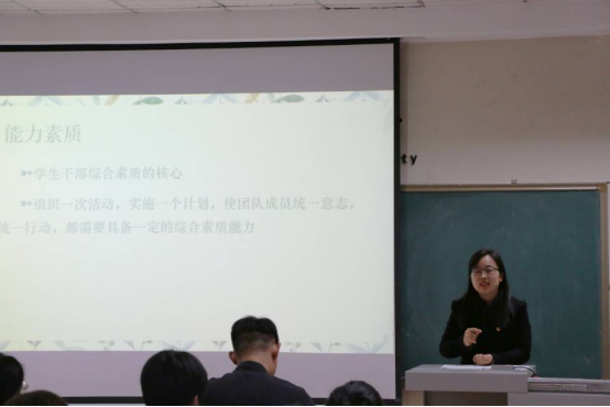 学员代表李文琦同学带领全体同学进行入班宣誓。随后,由刘文静老师讲授“青马工程”第一课,深入浅出地阐释了“学生干部的作用以及应具备的能力”。刘老师指出,多方面的综合素质,较好的身体素质、过硬的工作能力、坚定的工作信念等,都是成为一名优秀学生干部不可或缺的素养。作为一名合格的学生干部,要树立持续的自我要求,学习工作两头都要抓,两手都要硬,争取做到:凡事有交代,件件有着落,事事有回音。