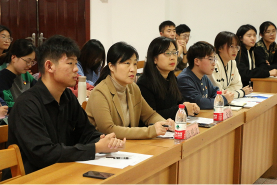 团委副书记刘蓉作为学生干部代表进行发言,我们要牢记重托、不负历史使命,在学习中进步,在实践中成长,在奉献中升华是对‘青年马克思主义者’的深度诠释,更是我们作为新时代学生骨干所肩负的不可推卸的责任。