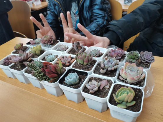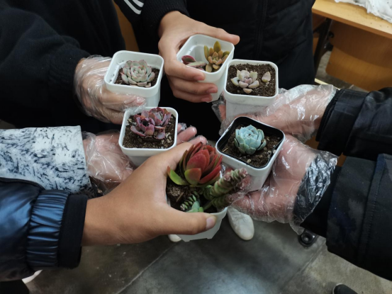 此次活动由生态知识小讲堂和趣味绿植两部分组成。活动伊始,团支书首先围绕传统生态文明智慧和日常生活中的环保举措两个方面作出讲解,呼吁同学们从身边小事做起,节约能源与资源,提倡循环绿色生活。紧接着,团支书以塞罕坝的故事和精神为例进行分享,通过观看视频、集体讨论等方式了解了更多生态文明建设的成功案例,树立榜样。知识小讲堂结束后,班级同学根据所提供的多肉植物和种植工具,动手栽种,将理论与实践结合,获得趣味绿植。最后,所栽种的多肉由同学们带回,活动圆满结束。