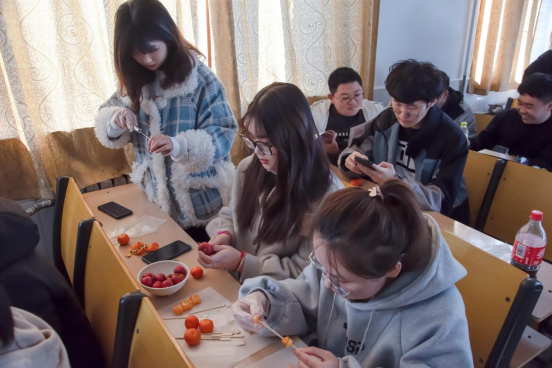 支部成员先后分享中国传统小吃冰糖葫芦的起源、发展以及所代表的文化底蕴,特写是结合各地方特色拥有的传统制作技艺。苏新月同学详细讲述了天津“糖墩儿”的具体做法,在制作的过程中要特别注意糖水不宜过度搅拌,沾糖的过程要均匀等。