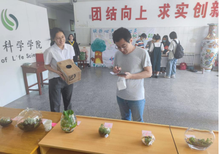 活动正式开始前,参赛选手通过策划书了解比赛的流程及规则。首先,提前购买基础物品并发放到选手们手中,参赛选手于5月24、25、26日自主完成生态瓶的制作,参赛选手们精巧设计,生态瓶的制作敢于大胆创新,将生态环保理念融于生态瓶中,既展示了“和谐、美丽”的生态文明观念也巩固了选手们生态系统专业知识,引起参与投票的同学们的赞扬与老师的称赞。最后,采用线上和线下综合投票的方式评选出了名次。此次活动圆满结束。