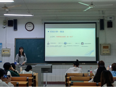 首先,2017级免师班杨晓雯从整体介绍了考研择校相关信息的获取,从官方信息渠道、招生政策、考试大纲等方面为大家进行了具体介绍,同时分享了自己对于政治和333教育综合的复习备考心得,尤其是考研政治强化阶段的复习技巧,为同学们提供了大量实战备考经验,极大地增强了同学们的备考信心。