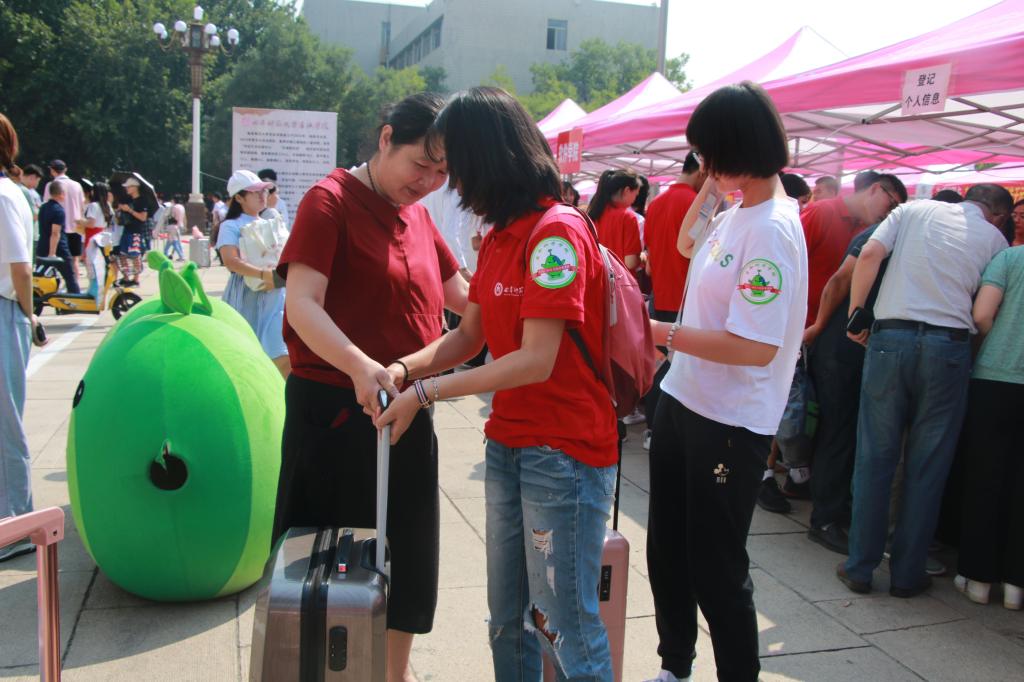 迎新主题活动之一“成人,从自己拎行李开始”倡议活动。