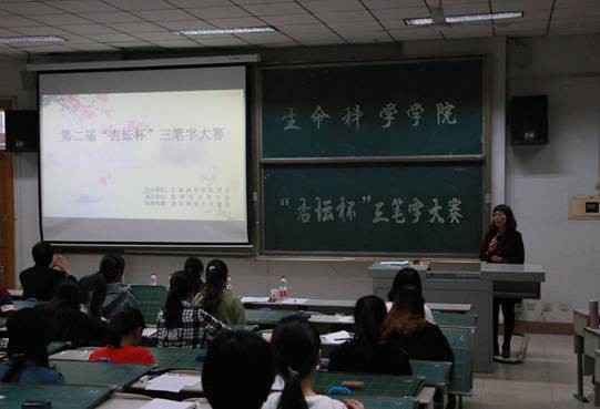 团委学生会于10月19日下午在综合楼101教室举办了第二届“杏坛杯”钢笔字、毛笔字、粉笔字“三笔字”决赛。张祥沛老师、郭永峰老师和燕艳老师担任了本次比赛的评委。本次活动面向2017、2018级全体学生。
