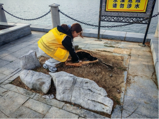 3月9日上午,志愿者们准时在沂河河畔集合。按照预先规划,志愿者们被分为两队,一队沿着沂河东岸,另一队沿着沂河西岸,有序展开垃圾清理工作。