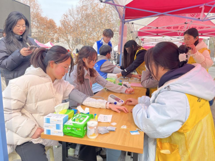 的志愿者们身着整齐服装,面带微笑,热情地引导师生参与。在量血压区域,志愿者们熟练地为师生绑上血压计,一边轻声安抚初次测量者的紧张情绪,一边仔细读取数值,并耐心讲解血压相关的健康知识,如合理饮食、适量运动对维持正常血压的重要性。在测血型区域,专业的检测流程有条不紊,志愿者们严谨操作,快速准确地检测出血型,还为师生们科普不同血型的特点以及在生活中的注意事项。
