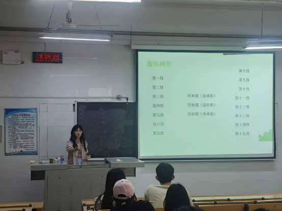 活动伊始,14组参赛队伍以两人一组的团队形式,依照准备阶段的线上抽签顺序有序落座,现场氛围紧张而热烈。随着主持人宣布比赛开始,参赛者一齐看向屏幕的题目,这时的他们仿佛不是对手而是统一战线的队友。比赛采用现场公开计分的形式,实时更新答题组的得分情况,当出现多组同分情况时,附加题环节更是将现场气氛推向高潮:屏幕上的多选题使队伍分数间出现差异,经过多轮比拼,依据附加题的答题得分评选出最后的获胜组和其他获奖者。