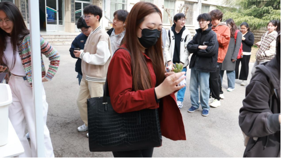 活动中,同学们有序领取绿植,并在社团成员的指导下学习养护知识。菁蕙学社的讲解员还为大家介绍了每种植物的名称、特征及养护技巧,帮助同学们更好地与绿植相伴成长。通过亲手领养绿植,同学们不仅感受到了生命的活力,也增强了对自然的热爱和环保意识。