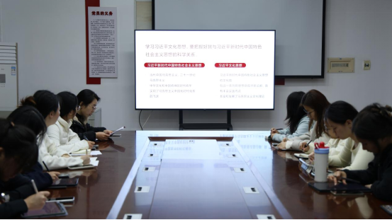 学习会期间,全体师生共同观看了《如何理解习近平文化思想的核心内涵》专题片,进一步深化了对“两个结合”特别是“第二个结合”的理解,增强了投身文化传承与创新实践的思想自觉和行动自觉。会议号召全体同学将习近平文化思想内化于心、外化于行,主动融入文化强国建设的伟大进程,积极参与校园文化、志愿服务与社会实践等活动,以青年视角讲好中国故事、曲园故事,用实际行动践行文化使命,展现新时代青年的昂扬风貌。
