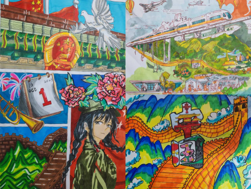 一贯重视学生思想政治与人文素养协同培育。本次绘画活动不仅为具有艺术特长的同学提供了展示平台,更以美育为载体,引导学生在创作中深化对祖国的认同与热爱,进一步坚定理想信念、增强使命意识,是一堂生动的爱国主义教育实践课。