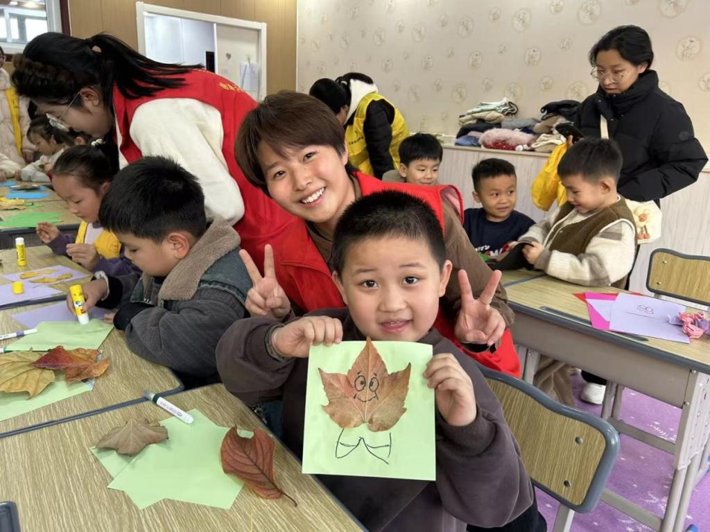 活动以手工创作拉开序幕,志愿者们利用树叶、彩纸等材料,演示叶子画制作技巧,引导孩子们发挥想象力将自然素材转化为创意画作。动手实践中,孩子们的观察力与创造力得到锻炼;作品分享环节,现场欢声笑语不断,交流氛围热烈。