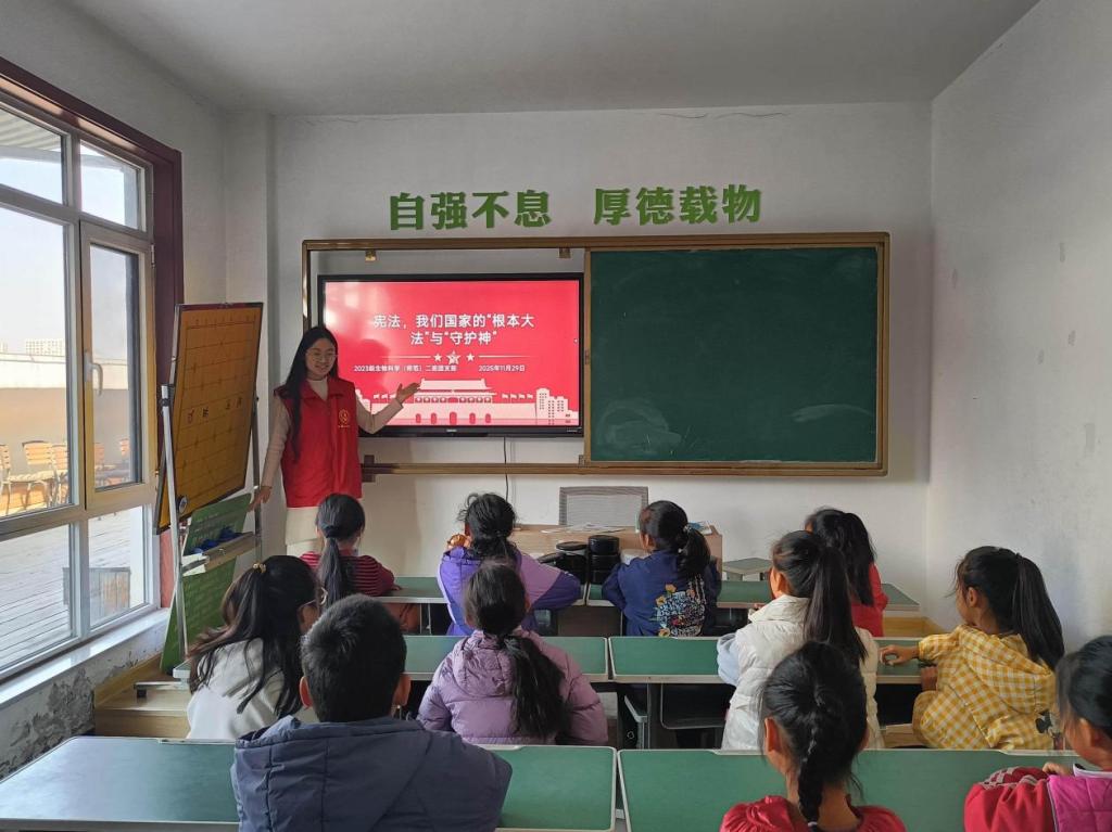 活动分为宣讲与互动两个环节。支部成员借助图文并茂的PPT,以卡通动画和生活实景为载体,运用“宪法如盾”等生动比喻,向孩子们阐释宪法与受教育权、人身安全等日常权益的紧密关联。在“遵纪守法行为辨别”互动游戏中,同学们准备了各类行为卡片,引导孩子们分组讨论、明辨是非,现场气氛活跃。活动通过通俗讲解与趣味互动相结合,使孩子们在沉浸参与中切实增强了规则意识与法治观念。
