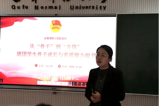 团委书记刘文静作题为“从‘骨干’到‘先锋’:班团学生骨干成长与素质能力提升”的专题讲座,“青马工程”启明班、育英班全体学员参加。