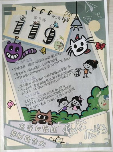 活动期间,各宿舍同学集思广益、共同设计,将和谐共处的愿景与规则共识融入创作之中。一份份公约作品图文并茂、创意纷呈,在笔尖与灵感交汇中,凝结成属于集体的宿舍之约。经由公正评选,这些凝聚智慧的作品脱颖而出。
