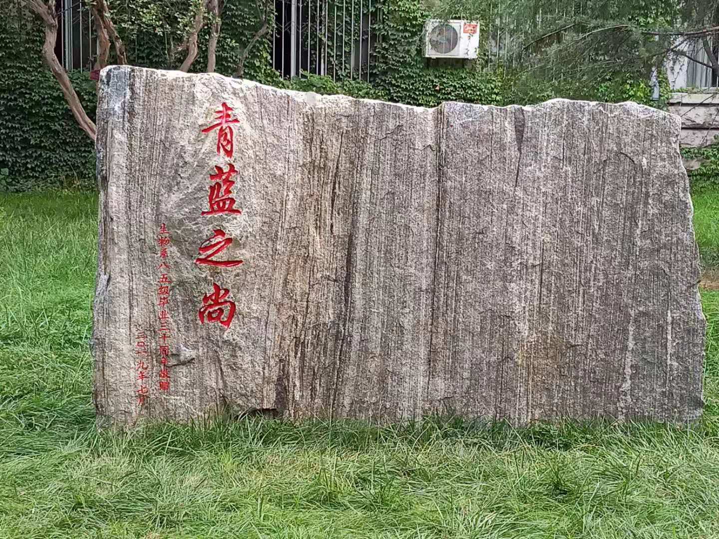 捐赠泰山石,上书“青蓝之尚”,表达对母校的深挚情感和美好祝愿。