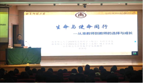 “走向卓越—启润讲堂”第五讲暨校友论坛报告会在孔子会堂举行。报告会邀请山东省优质课主讲教师、山东师范大学附属中学生物学教师岳淑婷做题为《生命与使命同行—从准教师到教师的选择与成长》的报告。报告会由副院长燕艳主持,学科教学(生物)全体研究生及2024级生物科学(师范)专业全体本科生参加了报告会。