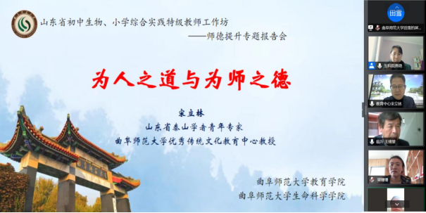 为贯彻习总书记加强师德师风建设的指导思想,进一步提升工作坊各成员的师德水平,2022年3月27日,山东省初中生物、小学综合实践特级教师工作坊联合举办“师德提升”专题报告会。会议邀请山东省泰山学者青年专家、足球论坛