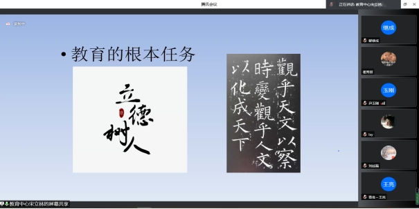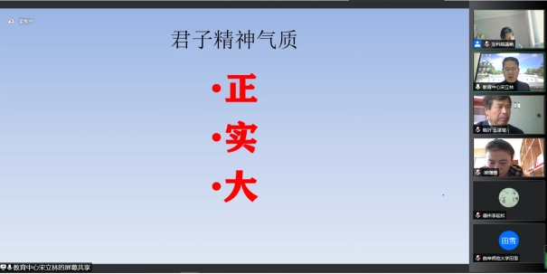 燕艳对宋教授的精彩报告表示衷心感谢。她认为,宋教授的报告让大家更清晰的认识到了传统文化是“根”,文化传统是“魂”,教师就是要通过传统文化教育来培根铸魂。作为育人之师,我们所有的教师都应该“用文化育长德,经典润师心”。最后,燕艳对工作坊的所有教师提出殷切的希望,希望大家能够充分利用课余时间深入学习,重视个人修养与师德提升,以“四有”好教师的标准规范自身言行,将优秀传统文化发扬光大,成为有君子气质的现代好老师。